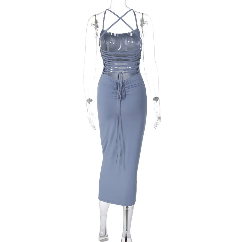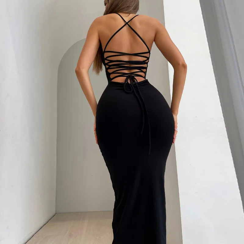 | Product Name | Women Spring Summer Sexy Backless Lace-Up Solid Dress |