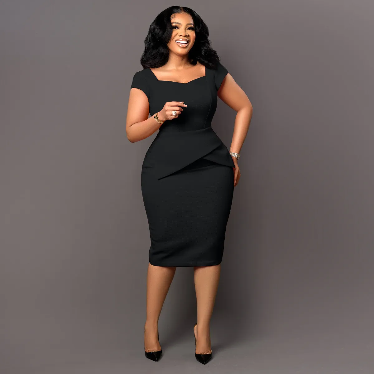| Product Name | Women Square Neck Short Sleeve Bodycon Office Dress |