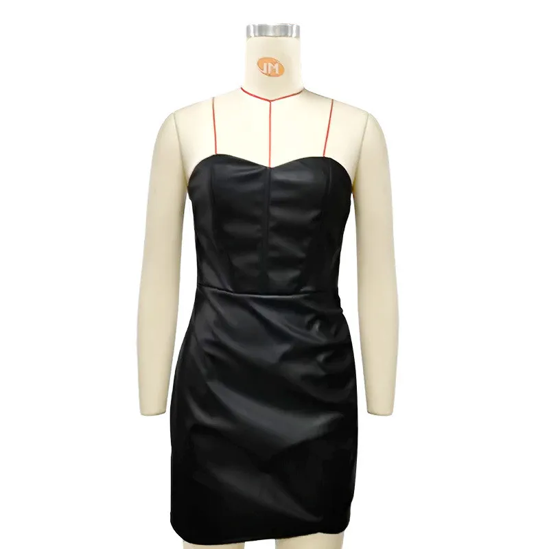 | Product Name | Women Strapless Sexy Bodycon Pu-Leather Dress |
