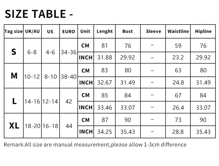 High Elasticity Fabric:Please add 0-0.5 CM from the garment size to body size.