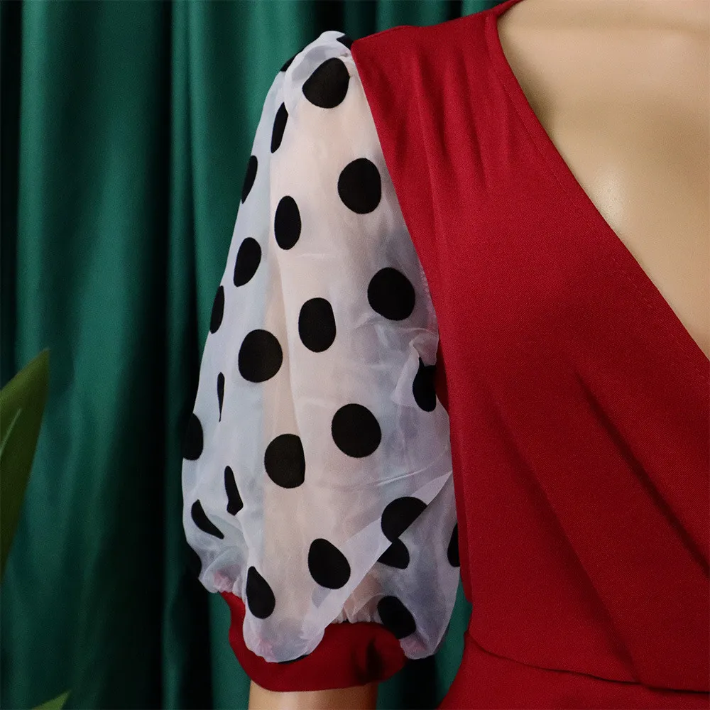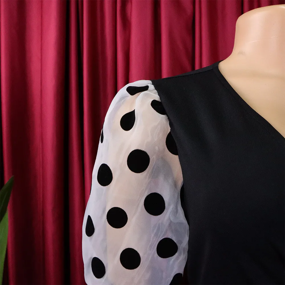 | Product Name | Women Summer mesh flocked puff sleeves V-neck Bodycon dress |