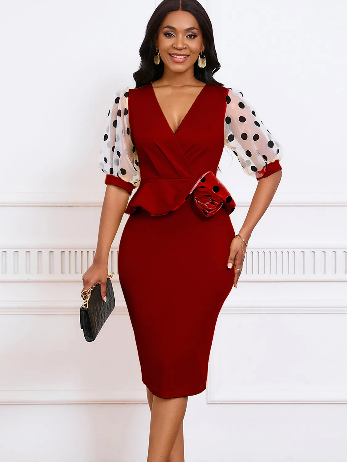 This Women Summer Mesh Flocked Puff Sleeves v-Neck Bodycon Dress Design Made Of High End Polyster And Spandex Material, It Has Enough Stretch, Wearing Comfortable And Make You Good Emotion All The Day. The Office Wear For Ladies Is a Perfect Look For Attend Meetings, Meet Important Customers, Go To Work Daily. When You Need Wholesale Best Work Dresses, You Can Find On Our Wholesale Women Appreal Online Store Something That You Really Can Not Find From Other Place.