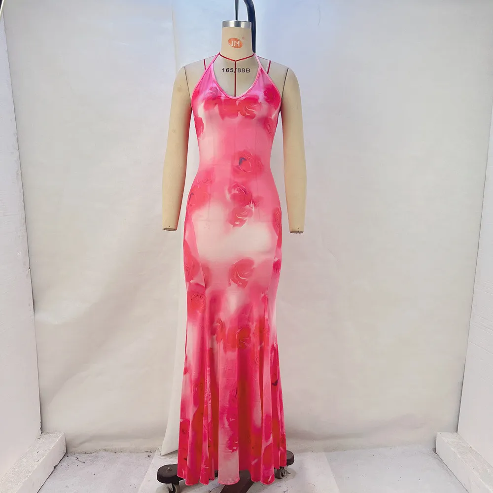 | Product Name | Women Summer Printed Backless Halter Neck Strappy Mermaid Dress |