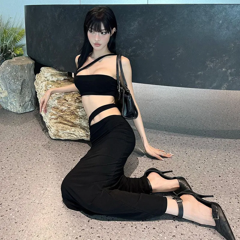| Product Name | Women Summer Style Slash Shoulder Halter Neck Crop Top and Skirt Two Piece Set |