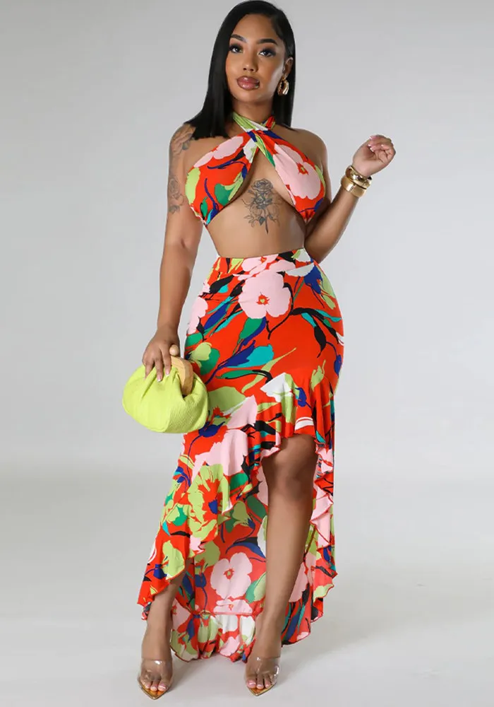 This Women Summer Top And Ruffled Slit Skirt Two-Piece Set Design Made Of High Quality Polyster And Spandex Material. It Is Stretchy, Durable And Comfortable. It Come With The Top And Skirt Matching Set. Women’s Skirt Suit Sets Is a Great Alternative To One Piece Outfit. It Can Either Be Worn Together Or Individually, So You Can Combine Them Endlessly. Grab Different Two Piece Skirt Set Wholesale On Our Website a Women’s Clothing Store Online At Really Cheap Price And Enjoy The Fast Delivery.